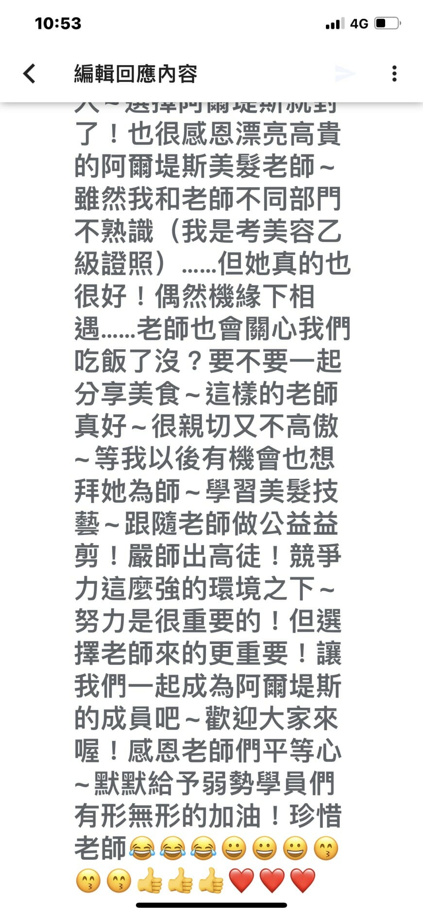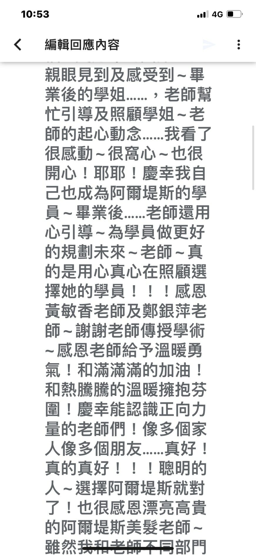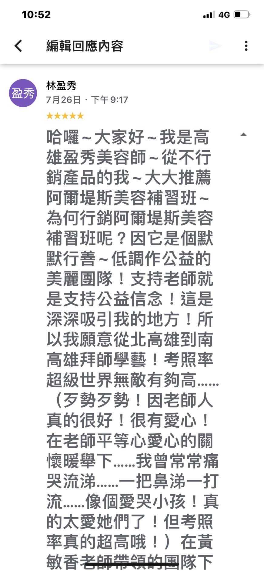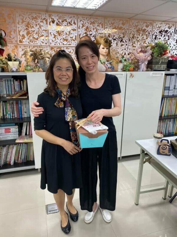 107年美容乙級學員盈,在本班輔導一次考上美容乙級證照,考取之後回饋在經營工作室服務項目價格有效提高,美容乙級視同本業講師執照,結業後在老師生日幫老師慶生